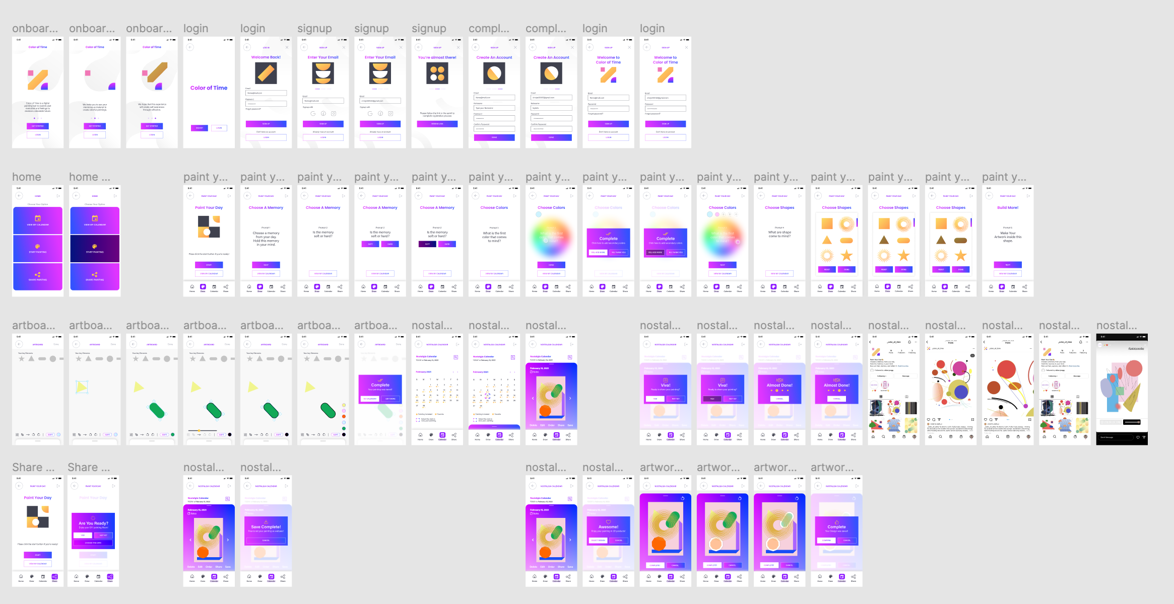 The app's most important feature is called "Paint Your Day." The goal of the Color of Time is to delve into one's past memories and feelings to envision a better future. In our everyday lives, we wear masks to work and meet our friends. Due to social norms, it is difficult to reveal our emotions honestly, which can cause stress and block the optimistic mindset because we are so used to hiding our feelings in our lives. As a result, I wanted to help people be more open to their feelings and practice self-reflection to better understand themselves and build strong relationships through this activity, which involves exploring memories and emotions to envision a desirable future.