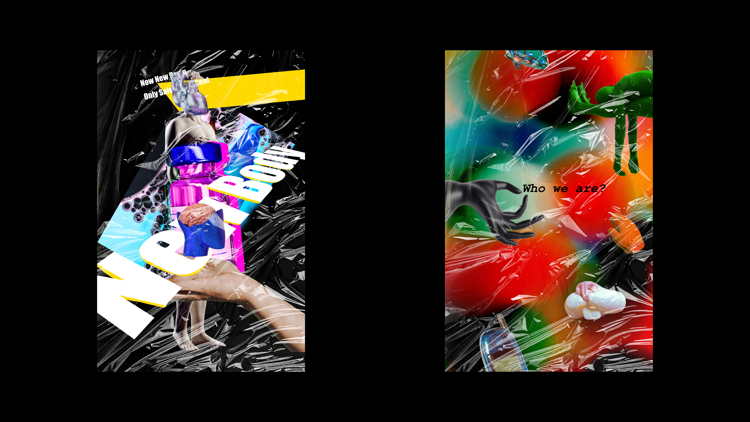 The first poster describes a scenario in which we may obtain biological immortality by reconstructing the human body—for example, brain-computer interfaces, Alternatively growing organs in a lab. When that day comes, the human body may become a commodity that we can readily purchase. Another poster arises from the question of immortality; if we are one day immortalized through digital or biological means, who are we? How do we define ourselves?